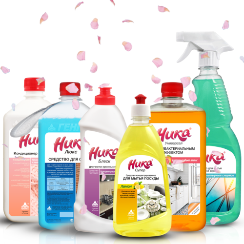 | Ника-Люкс: НПАВ ≈30%. Фосфаты <5%. Комплексообразователь. Оптический отбеливатель. Ароматизирующая добавка. Краситель. Вода. Кондиционер- Состав: 5-15% катионный ПАВ, консервант, глицерин, ароматическая добавка, краситель. Универсал с антибак.эфф.: НПАВ менее 5%. Дезинфицирующий компонент. Ника-Блеск: Щелочь более 5%. АПАВ менее 5%. Активные добавки. Ароматизатор. Ника-Супер: АПАВ >5%. НПАВ >5%. Загуститель. Комплексообразователь. Ароматизирующая добавка. Пищевой краситель. Ника-Для стекол и зеркал: изопропиловый спирт, аммиак водный, Н'ПАВ, триклозан, ароматическая добавка, краситель | |