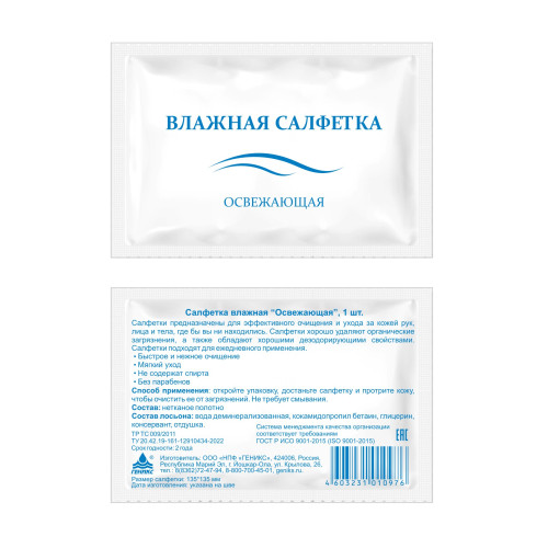 Салфетки влажные освежающие «Ника» в индивидуальной упаковке