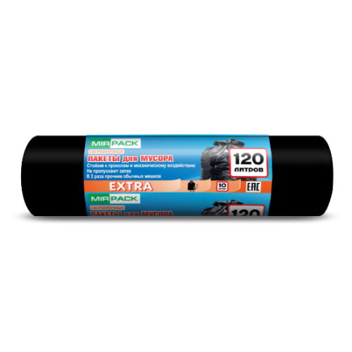 Мирпак EXTRA, мешки для мусора 120 л / 10 шт, 14 мкм