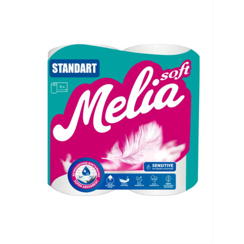Туалетная бумага Melia Soft Стандарт, двухслойная, 4 шт/уп